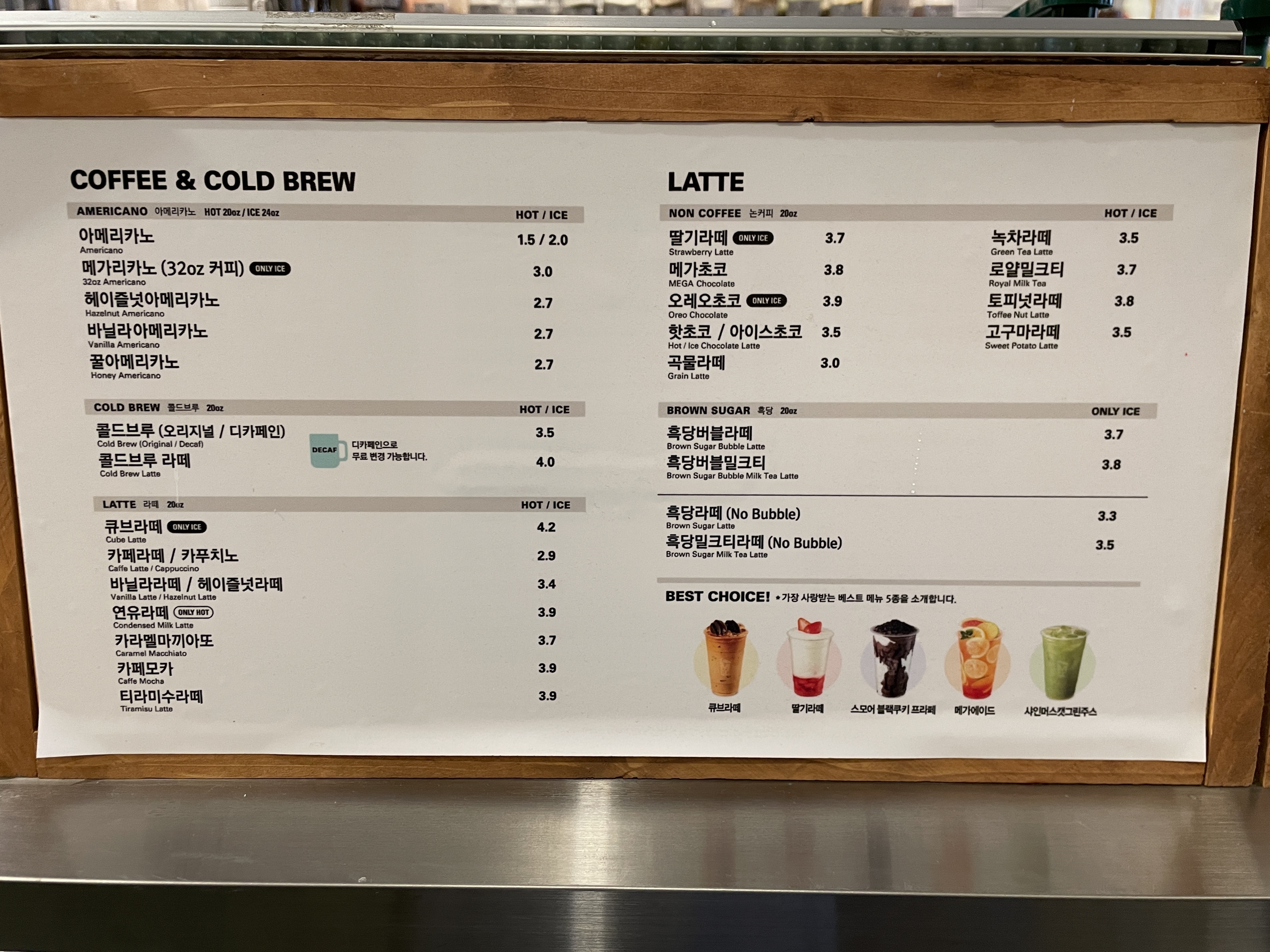 토피넛라떼/메가초코 3,800원