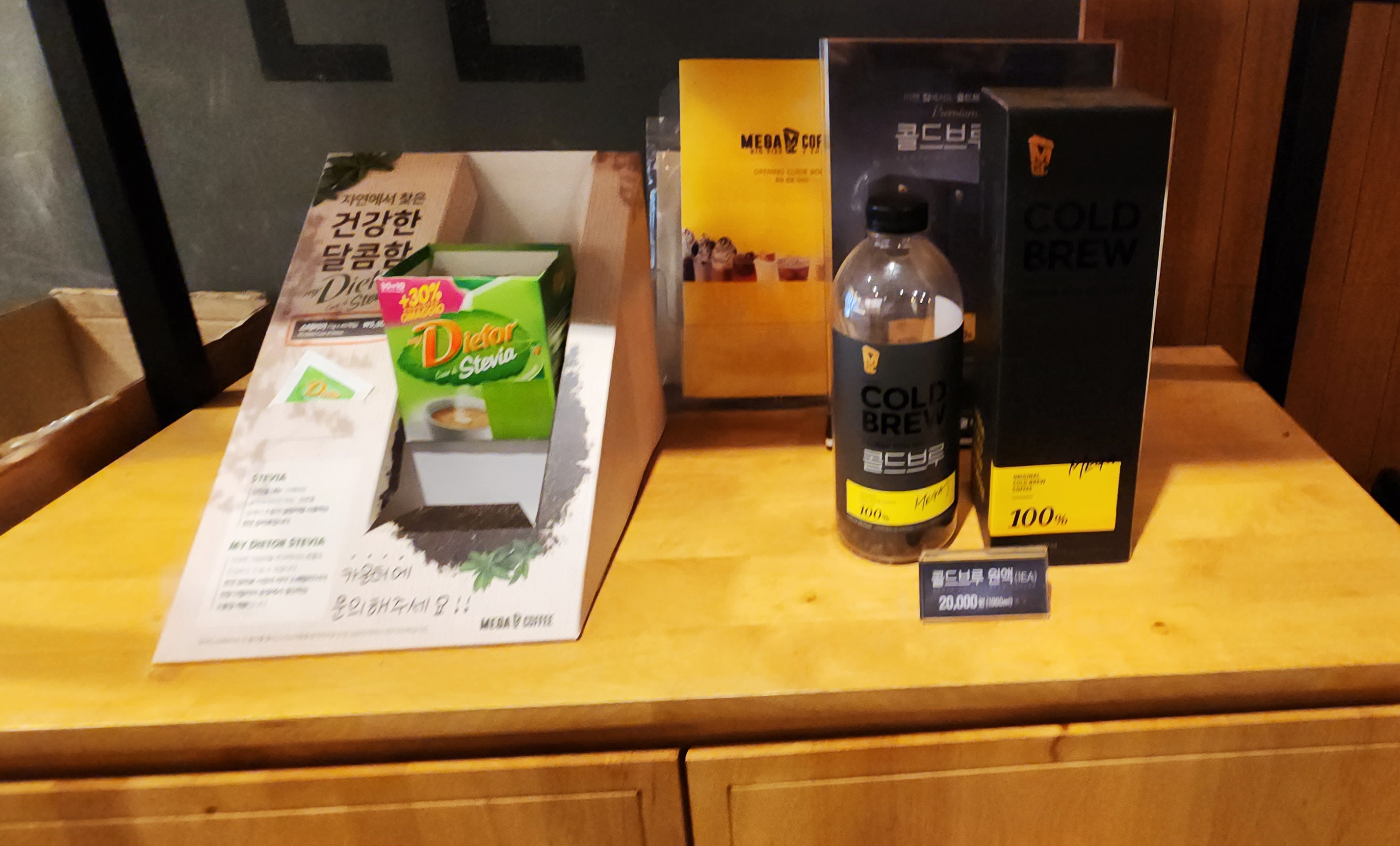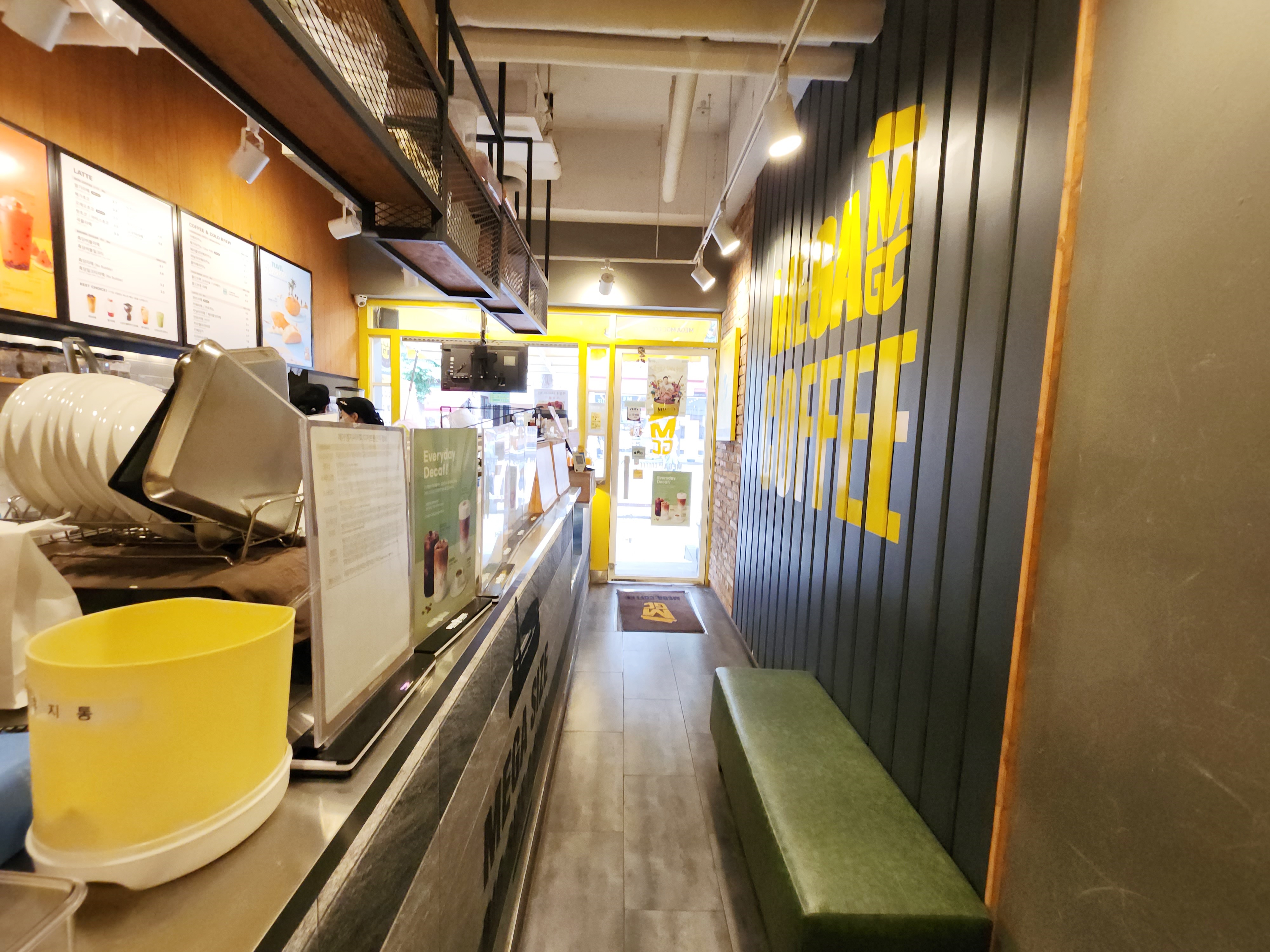 카페 프랜차이즈 메가커피 주문하는 곳이고요. 밖에서 키오스로 계산해도 되지만, 들어와서 계산해도 됩니다.