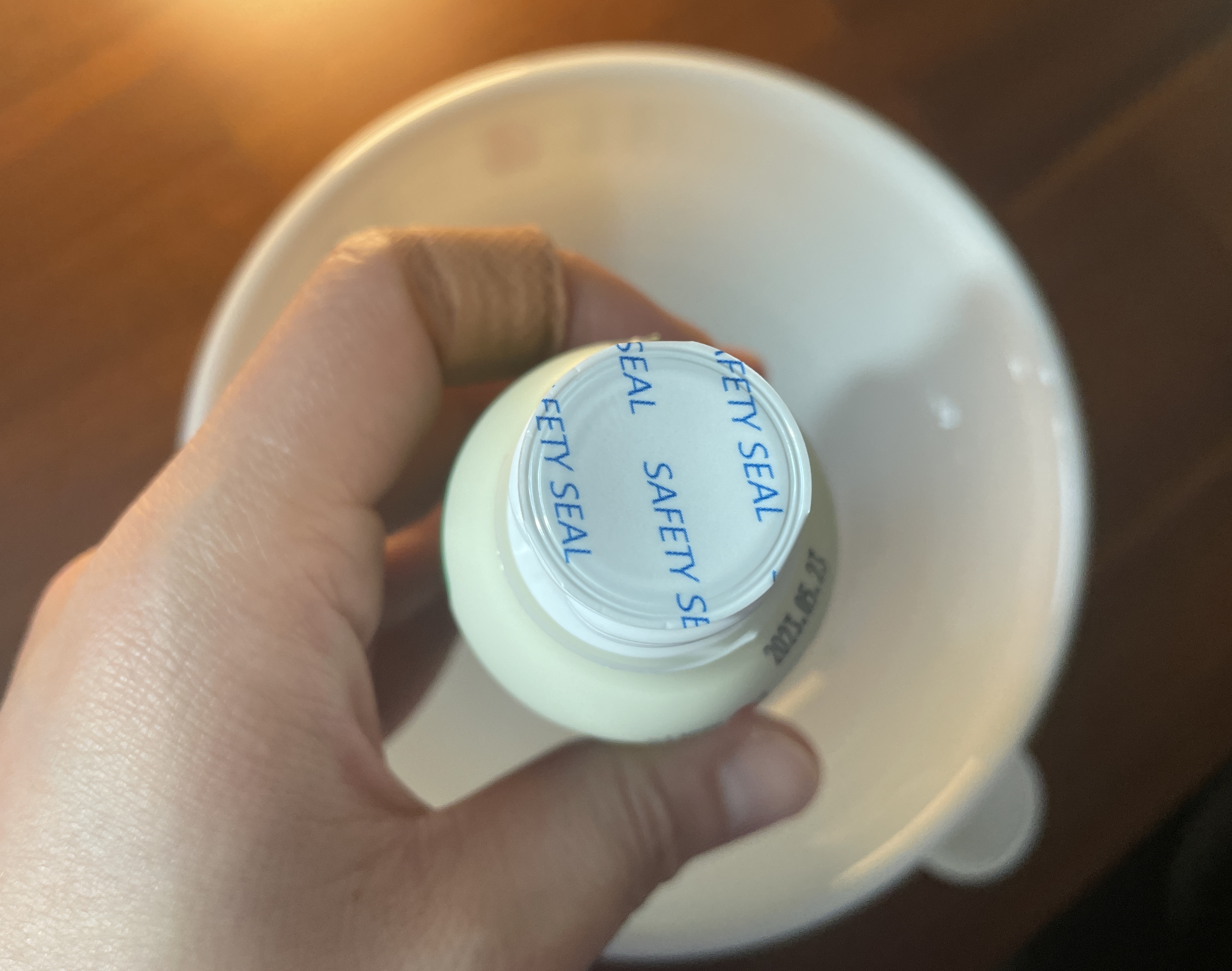 ▲밀봉된 실을 벗기고, 하얀 그릇에 변비직빵 종근당 오늘비움을 비웠습니다.